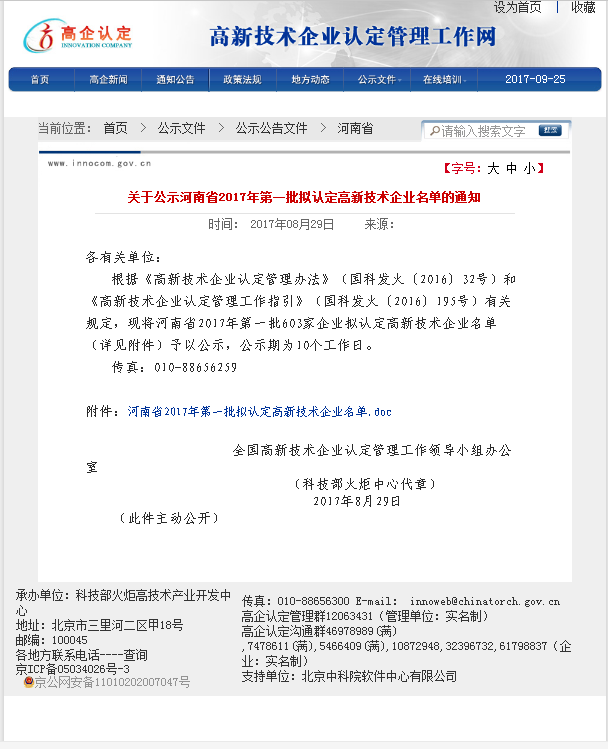 我司成為2017年河南省首 批高新 技術(shù)企業(yè)